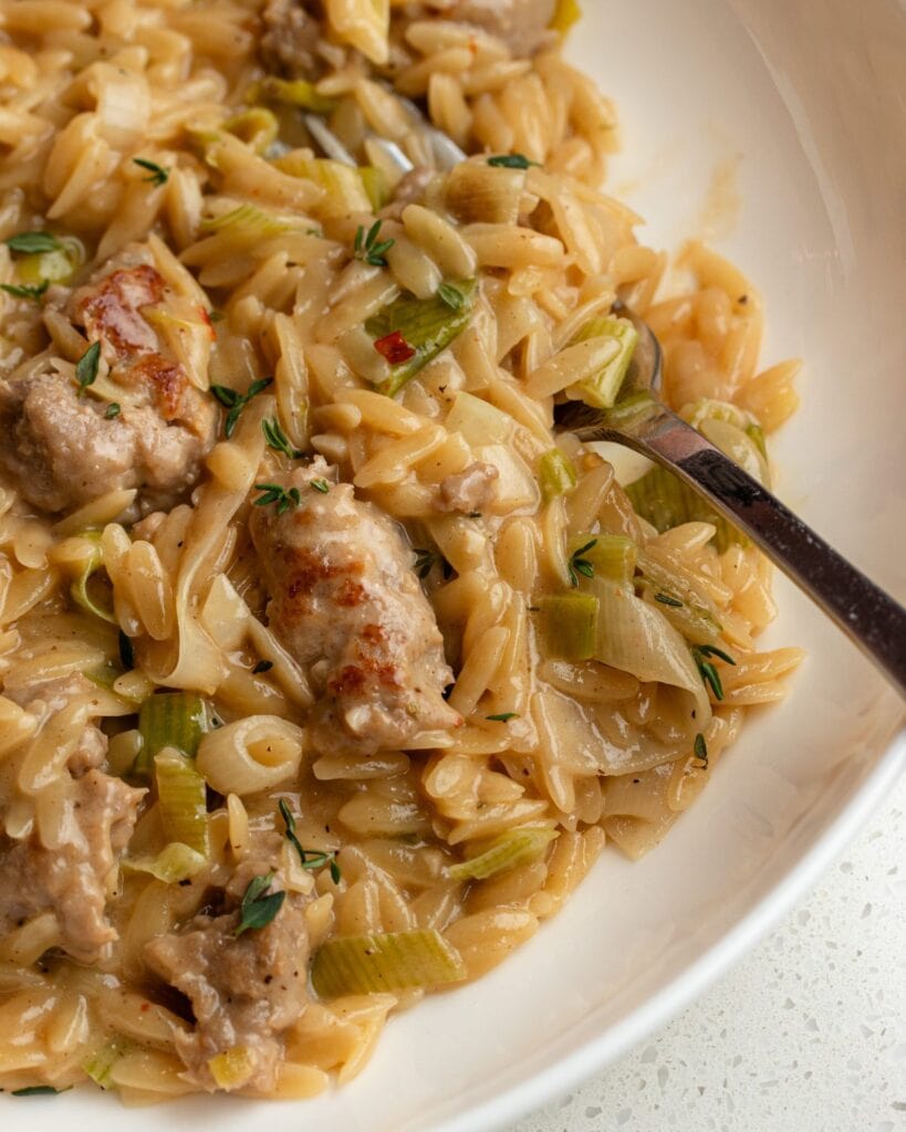 For this recipe I really love using pork and fennel sausages (like in my Creamy Sausage Pasta which you must try next!). I just love the flavor that fennel seeds give but use anything you like! Also use any pasta shape, there are no rules here. It would be delicious with some homemade pappardelle if you wanted to give it a try!