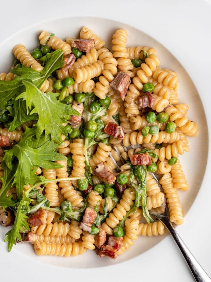 Creamy Pea Pasta with Pancetta
