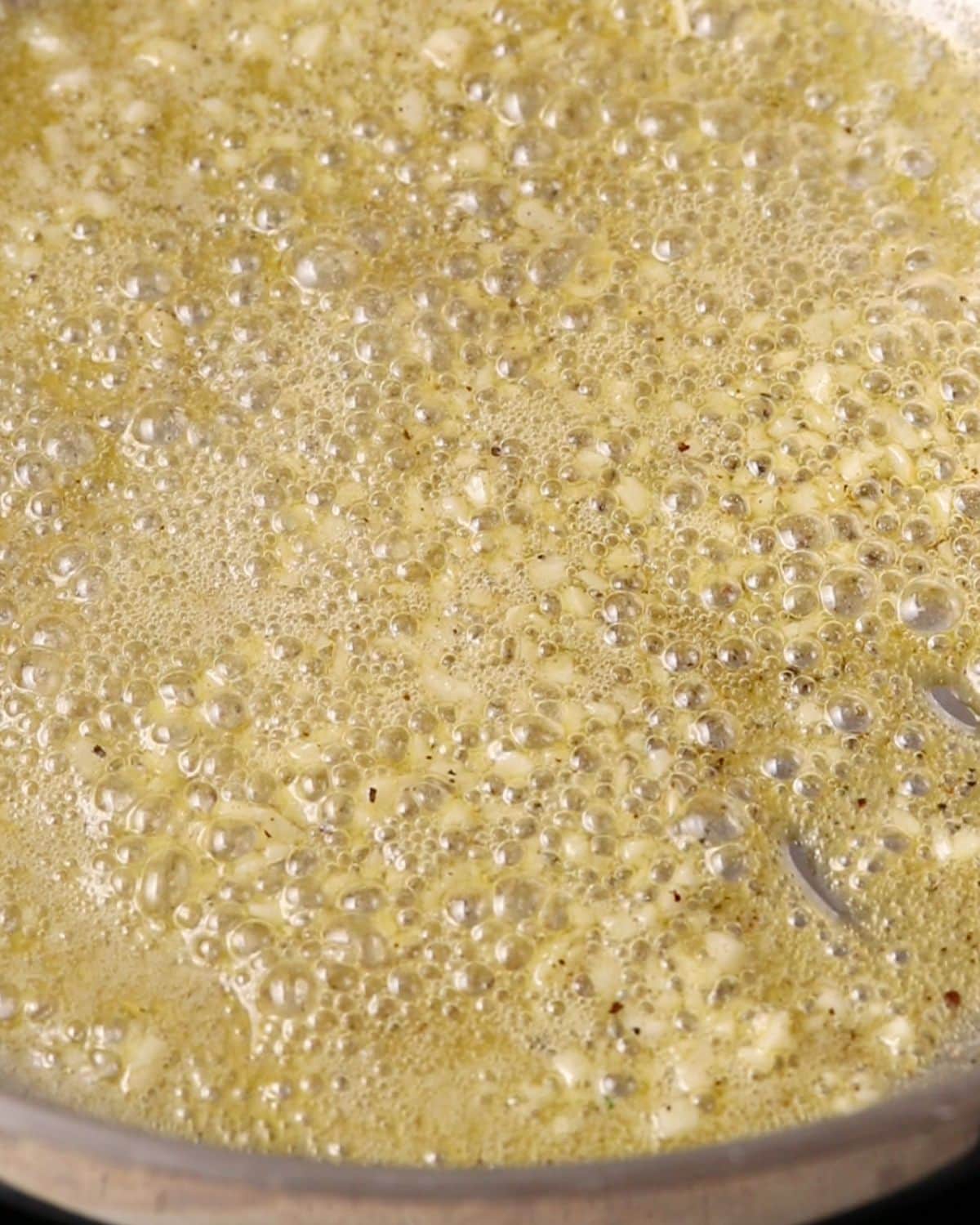 3. Add the black pepper, minced garlic (and red pepper flakes if using) and gently cook for 30-60 seconds, stirring so it doesn't brown.